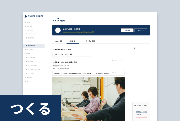 採用サイト構築も、求人作成も、記事更新も、ひとつのツールで完結。スピーディにオウンドメディアを立ち上げることが可能です。制作会社にデザインを依頼しなくてもオウンドメディアを始められます。